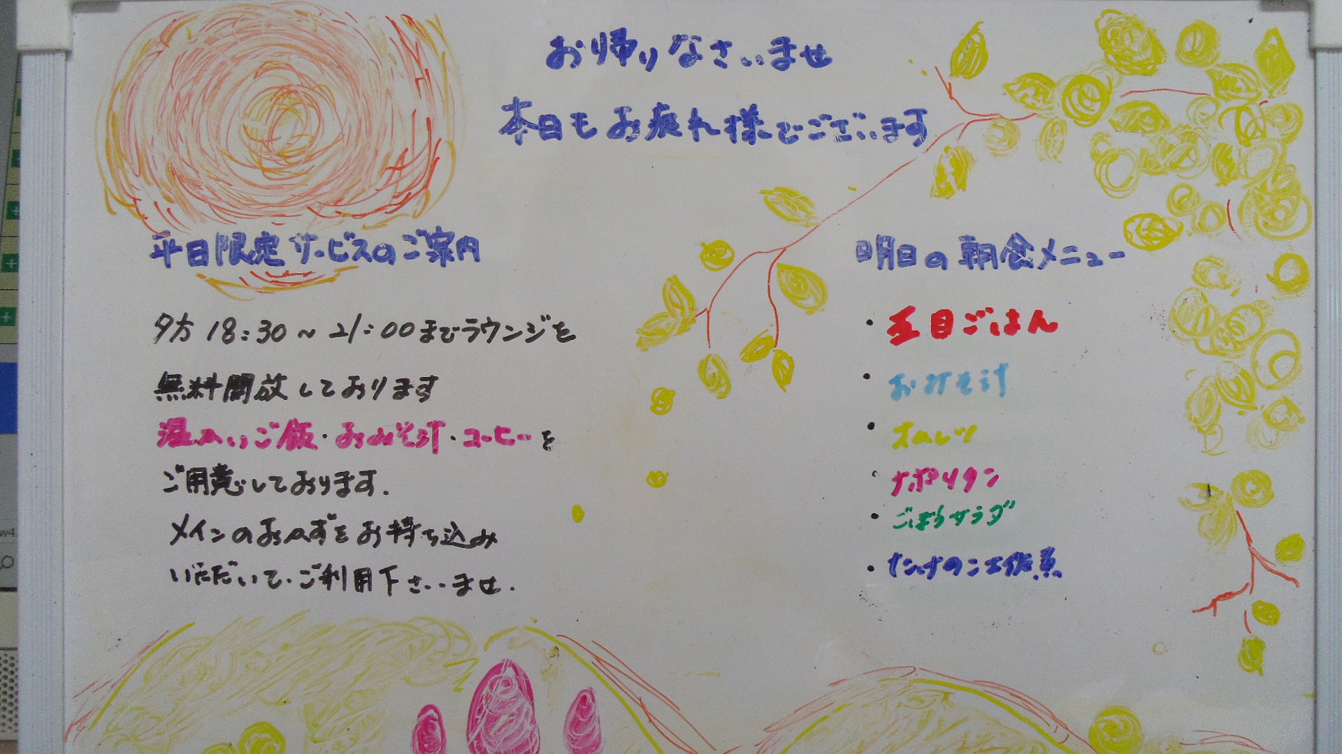 尚、朝食メニューは予定でございます、状況により変更もございますので御了承下さいませ。