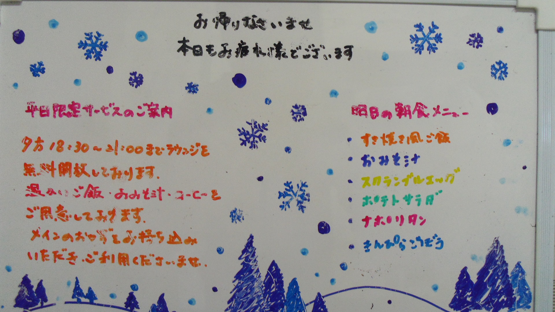 尚、朝食メニューは予定でございます、状況により変更もございますので御了承下さいませ。