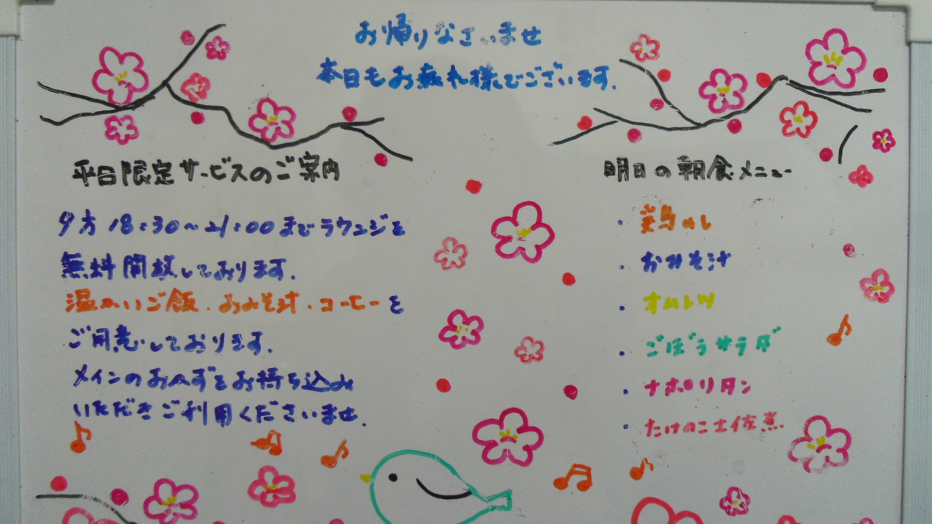 尚、朝食メニューは予定でございます、状況により変更もございますので御了承下さいませ。
