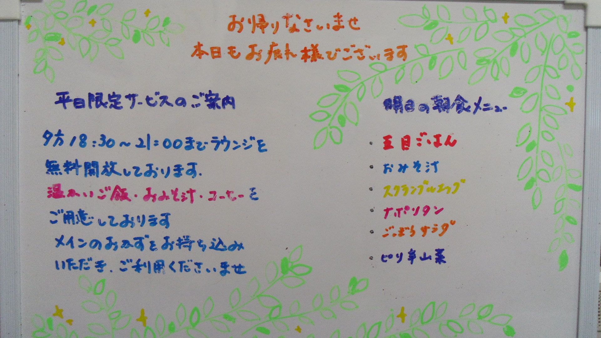 尚、朝食メニューは予定でございます、状況により変更もございますので御了承下さいませ。
